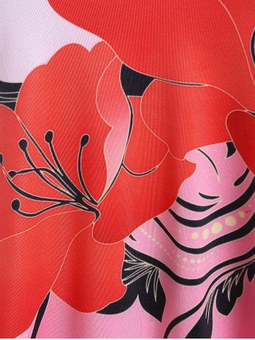 Camiseta de Hombros Al Aire con Estampado de Flores en Talla Extra - Rojo - Rojo