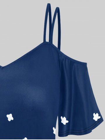 Camiseta de Hombros Al Aire con Estampado Floral en Talla Extra - Azul Profundo - S | Us 8