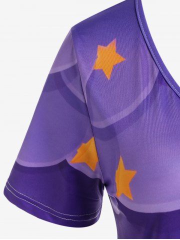 Camiseta de Manga Corta con Estampado de Calavera de Dibujos Animados - Púrpura - Púrpura