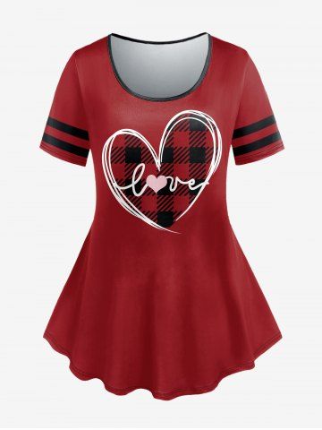 Camiseta de Manga Corta con Estampado de Letras y Corazón de Talla Extra - Color Rojo Oscuro - 2x | Us 18-20