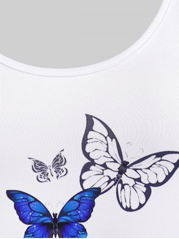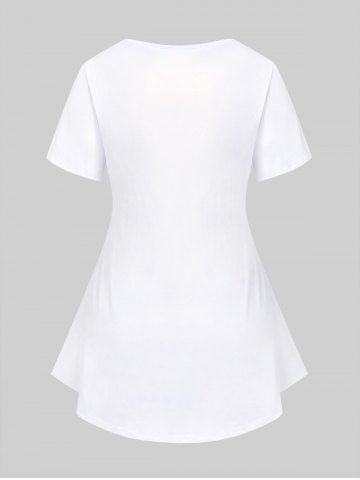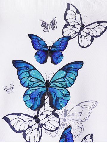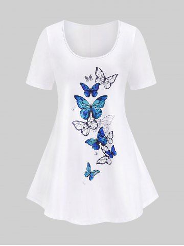 Camiseta de Manga Corta con Pintura de Mariposa en Talla Extra - Blanco - Blanco