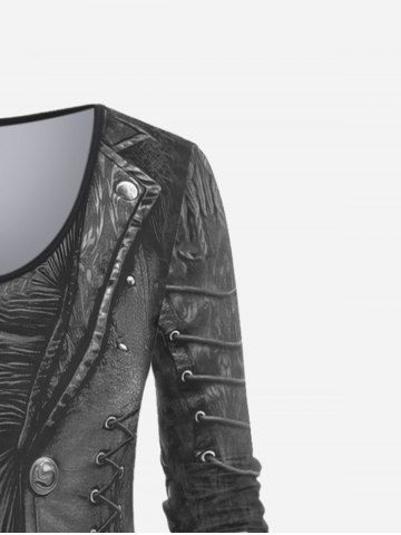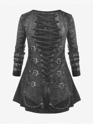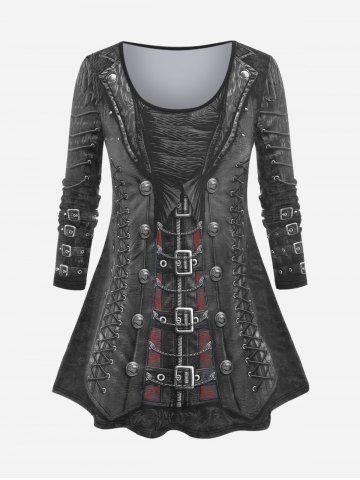 s*****z5Gothic 3D Jean Buckle Print Long Sleeve T-shirtColor: DEEP BLUE Size: 1X | US 14-16I love this top although the blue 1 was out of stock customer service were really good and I reordered the red which is lovely