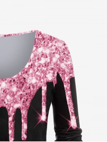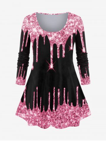 D*****e5Plus Size 3D Sparkles Paint Drop Blobs Printed Long Sleeves TeeColor: BLACK Size: 1X | US 14-16This outfit was awesome with a cute pair of low heels. Very nice for a date night! The pants were a little big but overall the fit was great!