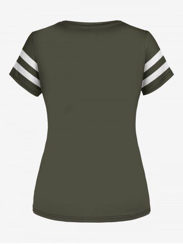 Camiseta de Rayas Gótica de Letras de Cráneo - Verde Claro - Verde Claro