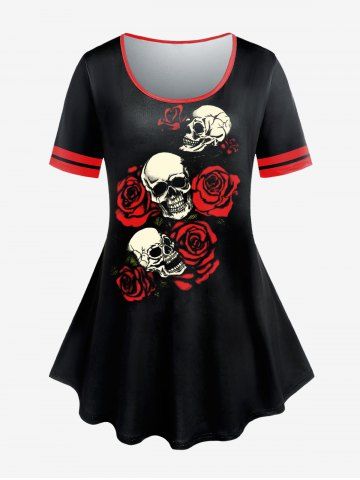 m*****s5Rose Skull Print Ringer Tee and Plaid High Waisted Leggings Plus Size OutfitColor: BLACKThis is one of my daughter's favorite outfits that she wears all the time! Fits perfectly!