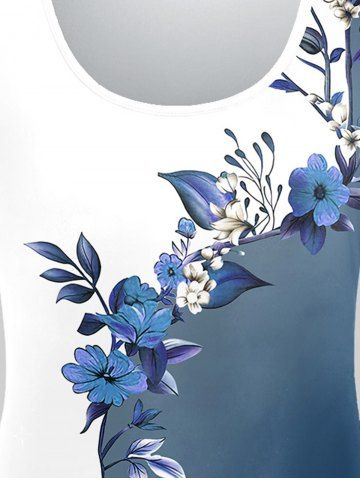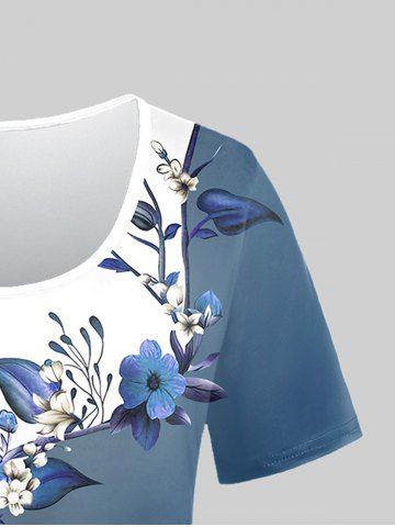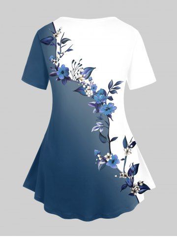 Camiseta de Talla Extra con Estampado de Flores de Dos Tonos - Azul - Azul