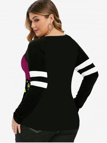 Camiseta de Talla Extra de Castillo de Luna de Estampado de Halloween - Negro - Negro