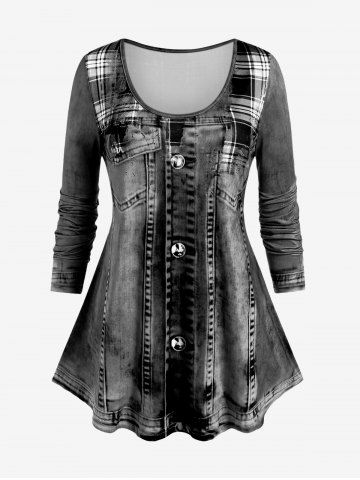 Camiseta de Talla Extra Denim de Estampado 3D - Negro - Negro