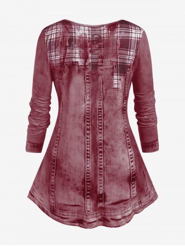 Camiseta de Talla Extra Denim de Estampado 3D - Color Rojo Oscuro - S | Us 8