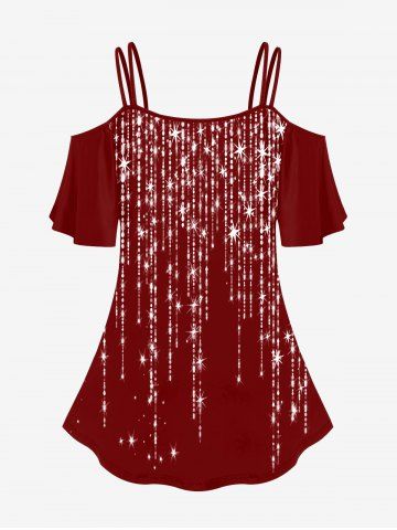 m*****s5Plus Size Cold Shoulder Glitter Print T-shirtColor: BLACK Size: 3X | US 22-24Love this top. It's so perfect for going out on the town. or going out for date night. It's so soft and the material is super flowy. perfect top for the summer. ordered 3XL but could of sized down. definitely recommend this shirt. absolutely gorgeous!