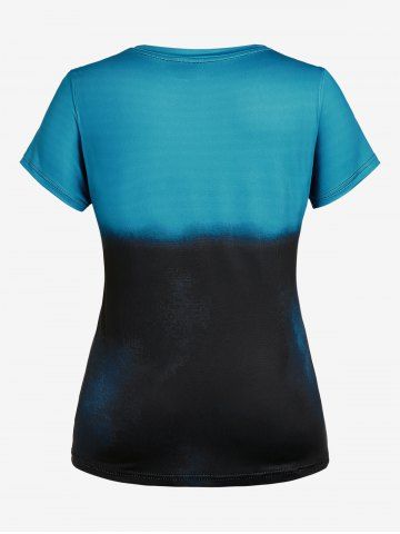 Camiseta de Tie Dye con Estampado de Pluma de Cráneo - Azul - Azul