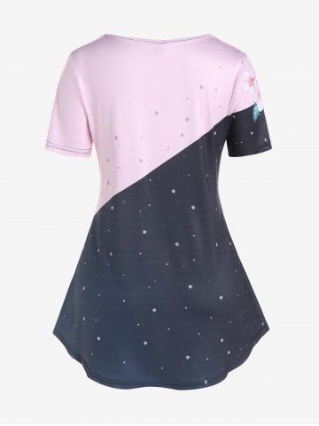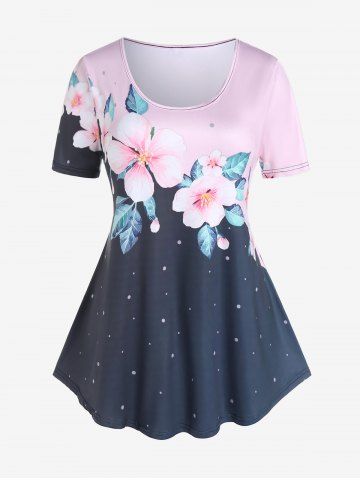 Camiseta de Verano con Estampado Floral de Color Bloque - Rosa Claro - Rosa Luz