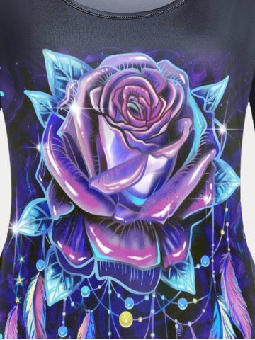 R*****r5Floral Starlight Print T-shirt and Starlight Floral Print Capri Leggings Plus Size Summer OutfitColor: BLACKI love the flowers will be pretty for spring and nice for summer with the thin material will be great for the hot weather on vacation!!!