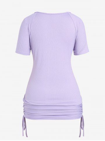 a*****s5Lavender Ruffled 2 in 1 Tee and Floral Print 3D Jeggings Plus Size Summer OutfitColor: PURPLEFits great. I got XL in both but vould have gone with a L on the pants only because they are super stretchy, I am 5'1 and 190, short and thick. shirt covers my behind well and is a soft and thin jersey type sweater. the inside is kind of like a satiny blouse. the pants feel like super thin yoga pants and the design is printed on, cant feel the design its very thin material and feels kinda like tights when on. both are very soft. perfect for fall. it's well made so I washed on regular and dried on low heat