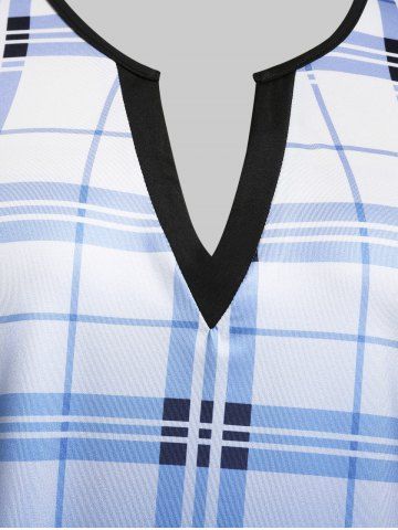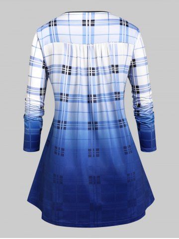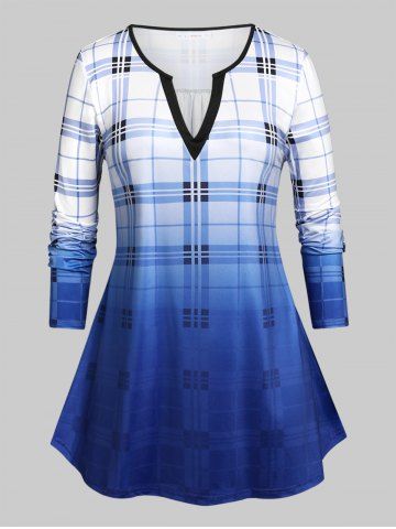 K*****A5Plus Size Plaid Ombre Color T-shirtColor: BLUE Size: 5XJe trouve cette tunique polyester lycra elle taille bien est tres jolie portéenJe suis une grande taille tres bellenEn générale les tuniques que je choisie sont tres belle et agreablenElle me vas bien mais un peu longue des manches et oui pour 1.55 je pese 104 kgs