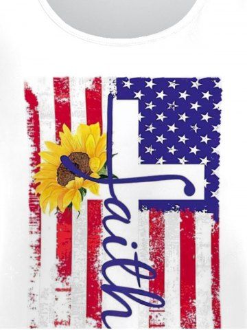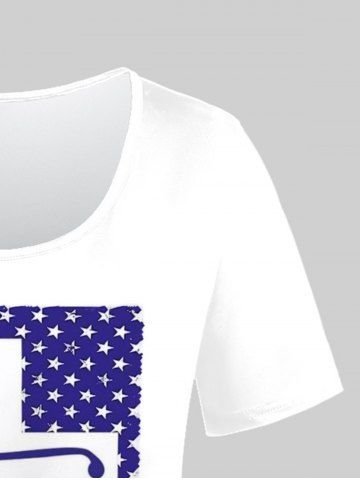 Camiseta Gráfica con Estampado de Letras con Bandera de Estados Unidos en Talla Extra - Blanco - Blanco
