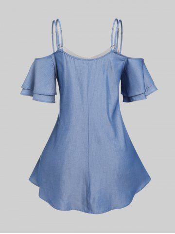 v*****94Plus Size Contrast Lace Panel Cold Shoulder TeeColor: BLUE Size: 4X | US 26-28love this top its comfortable and the adjustable straps make a difference would have liked it to be a little longer in length bpersonal preference