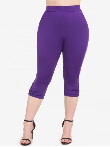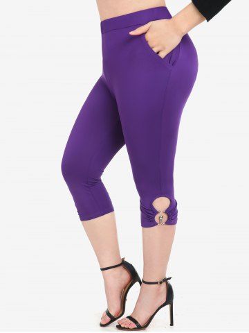 C*****t5Plus Size Cutout Pull On Capri Pants with PocketColor: PURPLE Size: L | US 12I ordered these in a size down from my normal size after reading the sizing guide & and reviews, and I'm so glad I did! The size down fits well. I was worried they would be way too long on me as I am short, but thankfully, they are a good length.