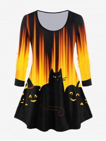 a*****y5Halloween Long Sleeve Pumpkin Cat Print TeeColor: ORANGE Size: 4X | US 26-28OMG this is my favorite out of the two halloween shirts i purchased. its true to size which is awesome. match it with a black pair of halloween pants and if was good too go. many people complimentented md on the shirt. love it.