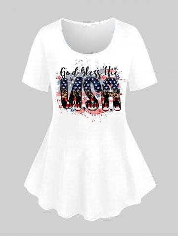 Camiseta Patriótica con Estampado de Bandera de Estados Unidos en Talla Extra - Blanco - Blanco