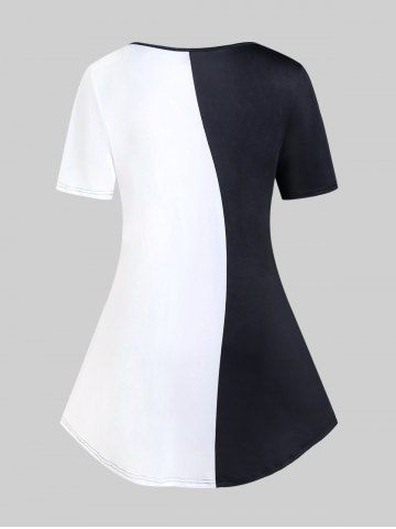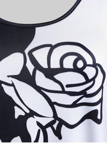 A*****a5Plus Size Rose Print Colorblock TeeColor: BLACK Size: 5X | US 30-32Beautiful fabric and very soft. Fits great and very comfortable. I love it.