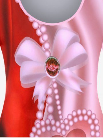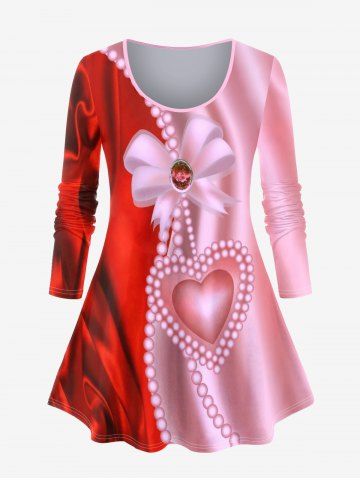 Camiseta Talla Extra Estampado Corazón Moño 3D - Rojo - Rojo