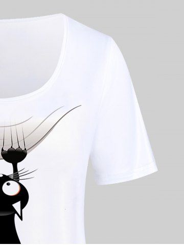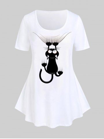 p*****k4Plus Size Cartoon Cat Print TeeColor: WHITE Size: 3X | US 22-24it fits nice. great material and worth every penny. as a large sized woman it's hard to find clothes that fit nice and don't look like my grandma had it in her closet
