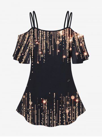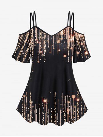 Plus Size Cold Shoulder Glitter Print T-shirt
