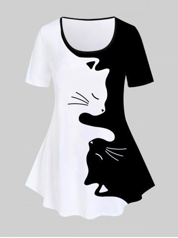 Graphic Tees > Camiseta Talla Extra Manga Corta Dos Tonos Patrón Gato