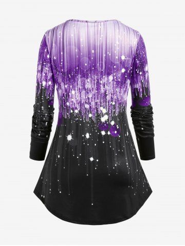 Camiseta Talla Extra Manga Corta Estampado 3D Rayado - Púrpura - Púrpura