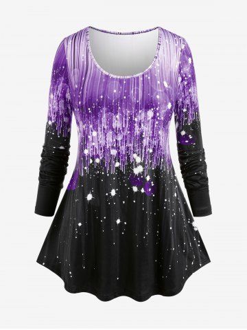Plus Size 3D Sparkles Pinstripes Printed Short Sleeves Tee