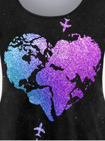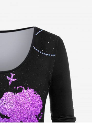 Camiseta Talla Extra Manga Larga Estampado Corazón 3D - Púrpura - Púrpura