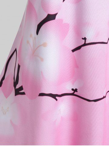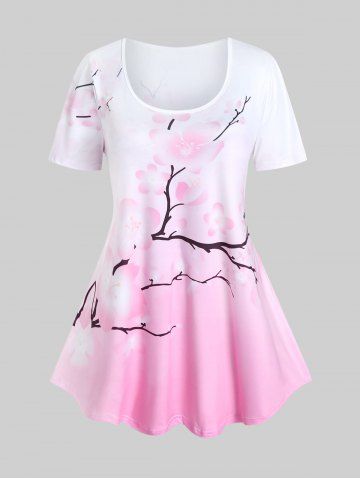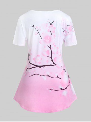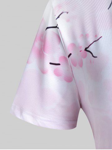 Camiseta Tipo Túnica Manga Corta Estampado Floral Tamaño Plus - Rosa Claro - Rosa Luz