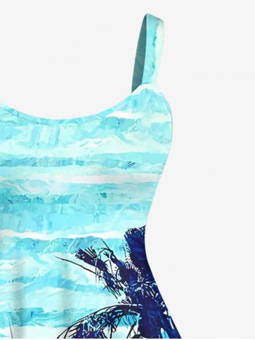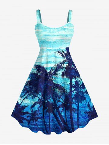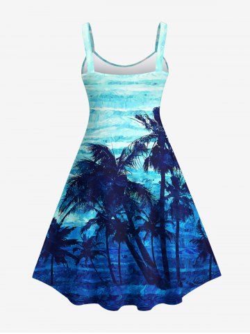 Coconut Tree Sea Waves Ombre Print Plus Size Matching Hawaii Beach Outfit For Couples