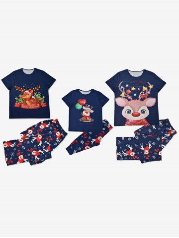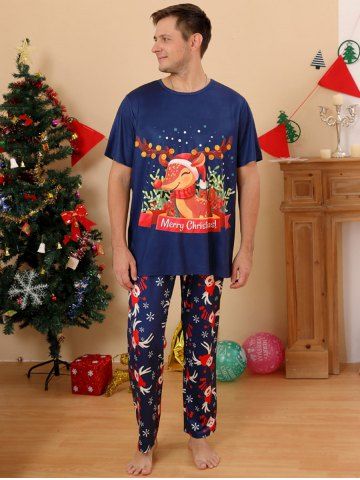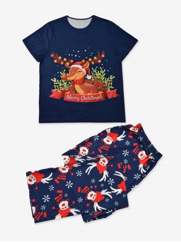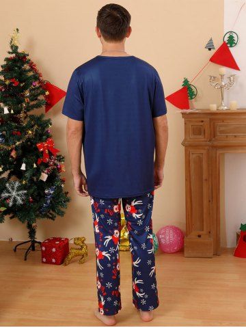 Conjunto Pijama y Pantalones de Estampado de Alce de Navidad para Hombre - Azul Profundo - L