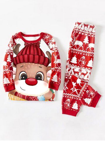 Conjunto Pijamas para Niños Estampado Color Bloque Manga Raglán - Rojo - Rojo