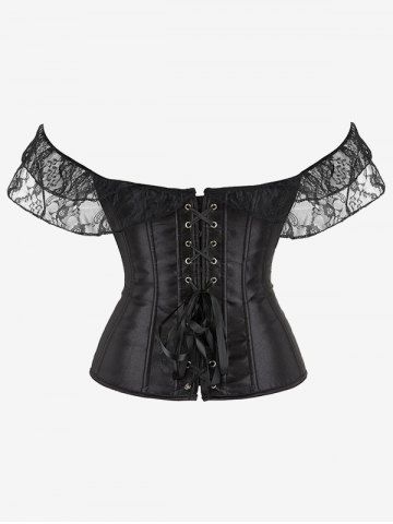 Gothic Off The Shoulder Lace Panel Lace-up Boning Corset Top