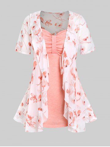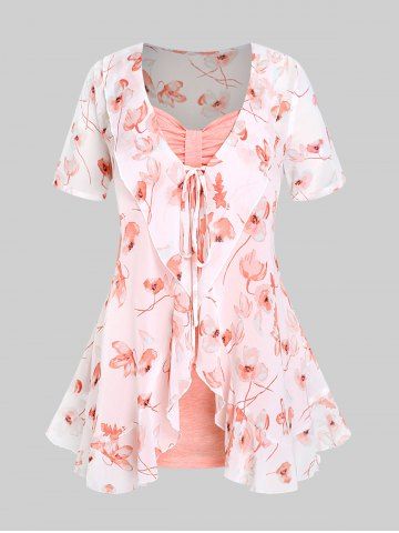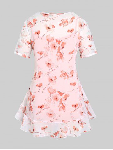 Plus Size Flutter Sleeve Contrast Lace Handkerchief T Shirt