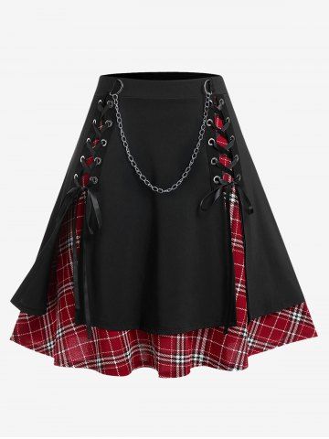 Plus Size Gothic Plaid Buckles High Waisted A Line Mini Skirt