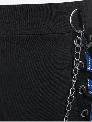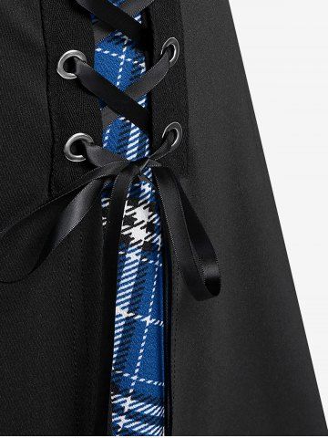 Gothic Chains Lace Up Layered Plaid Skirt - Azul Profundo - 5x | Us 30-32