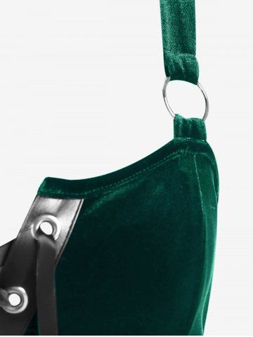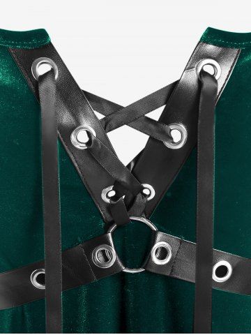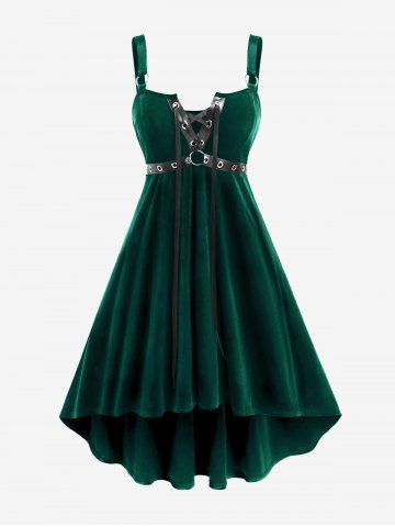 Gothic Lace Up Grommets High Low Velvet Midi Dress - Verde Oscuro - L | Us 12