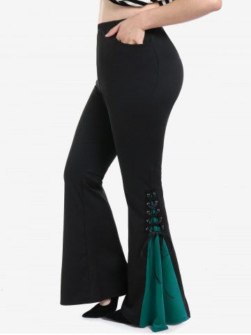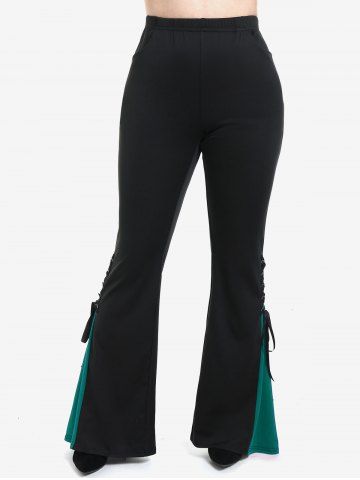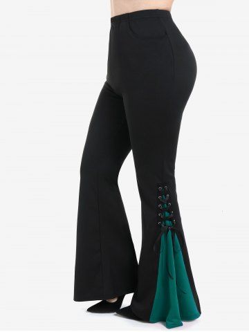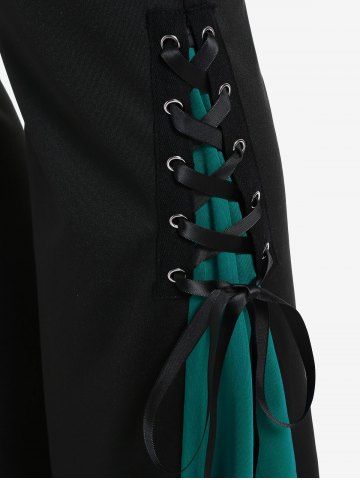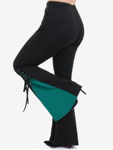 Gothic Lace Up Two Tone Godet Hem Pull On Flare Pants - Verde Oscuro - 2x | Us 18-20