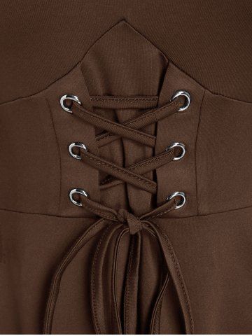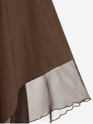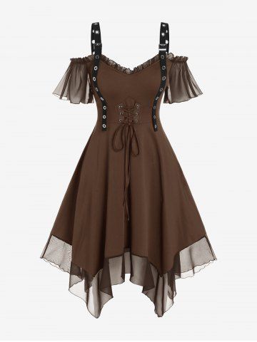 Gothic Plus Size Cold Shoulder Lace Up Grommet Handkerchief Chiffon Asymmetric Dress - Café Profundo - 3x | Us 22-24