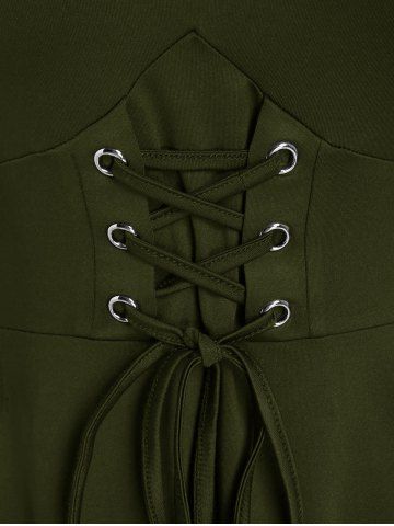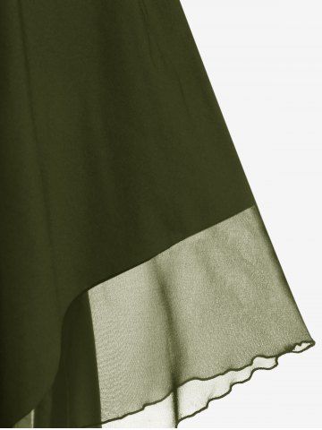 Gothic Plus Size Cold Shoulder Lace Up Grommet Handkerchief Chiffon Asymmetric Dress - Verde Oscuro - 5x | Us 30-32