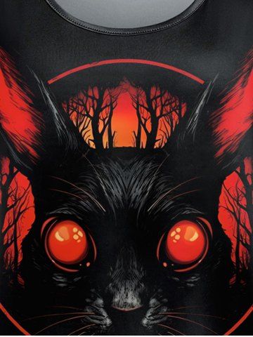 Gothic Rabbit Moon Tree Print Short Sleeves T-shirt - Negro - Negro