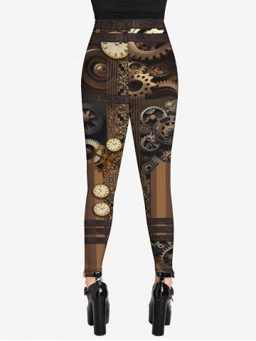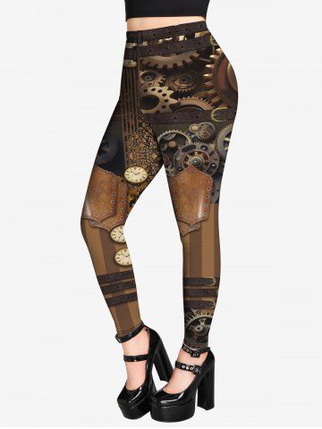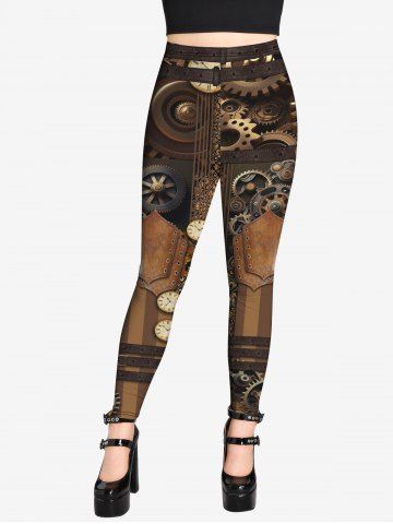 Gothic Steampunk 3D Machines Gear Print Leggings - Café - Café