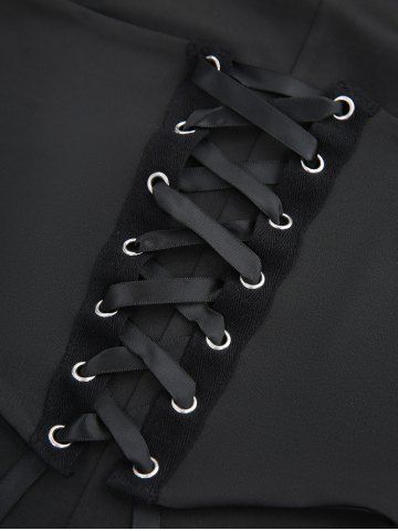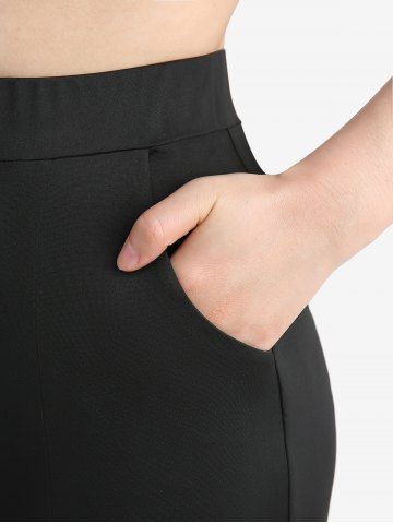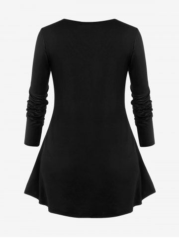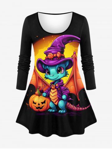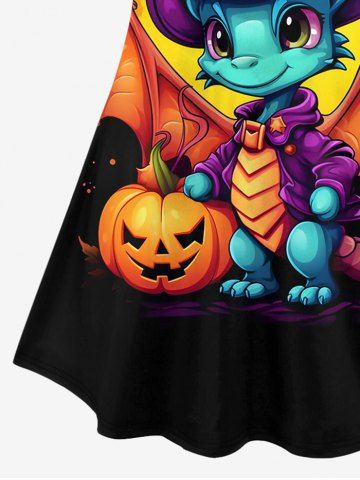 Halloween Costume Dinosaur Pumpkin Print T-shirt and Lace-up Split Pocket Pants Plus Size Matching Set - Negro - Negro