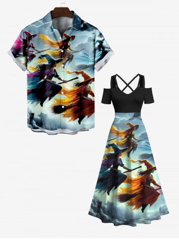 Couple Halloween Outfits > Halloween Costume Wizard Broom Ombre Sky Cloud Print Plus Size Matching Set For Couples