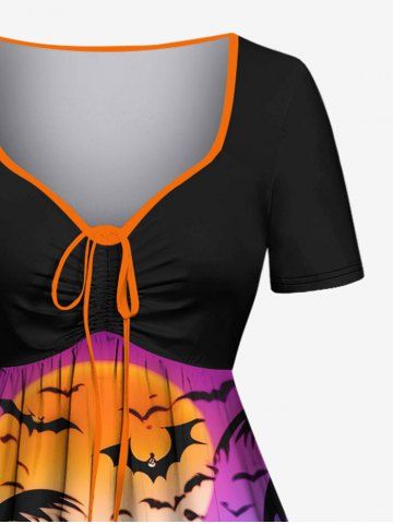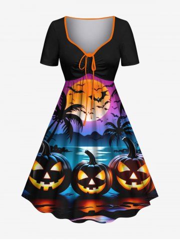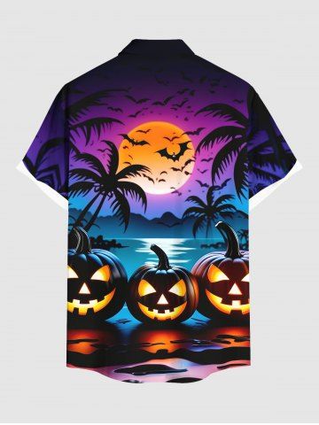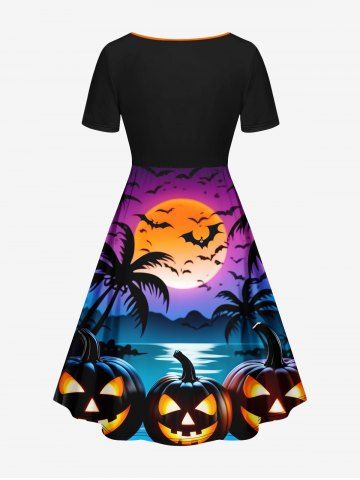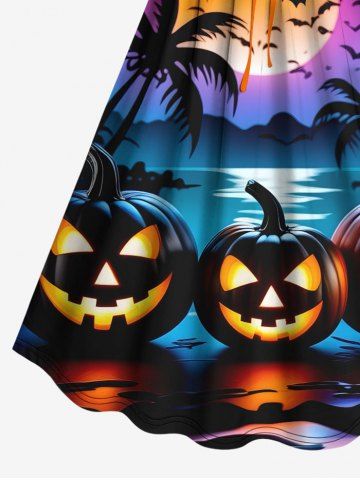 Halloween Pumpkin Coconut Tree Moon Bat Print Plus Size Matching Outfit For Couples - Negro - Negro