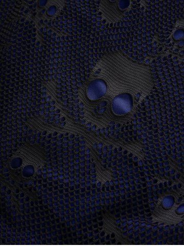 Plus Size Skulls Mesh Panel Bell Sleeves Twist Lace Up Asymmetrical 2 In 1 Top